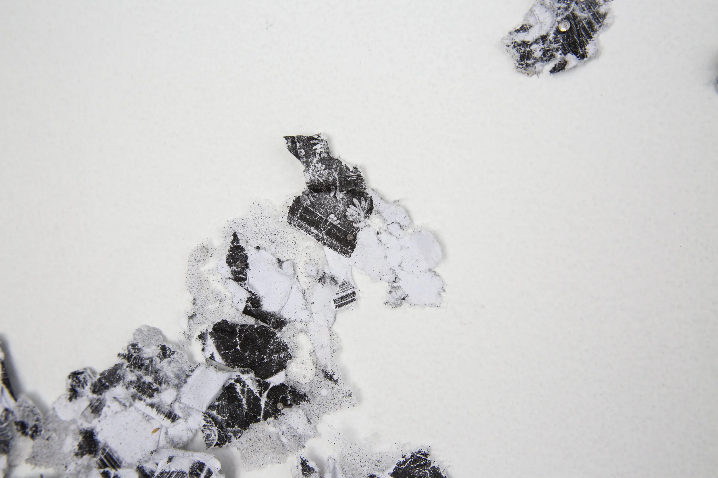 During the opening of a show curated by myself and Ben Cook, titled Memory Matter, we displayed an old copier that Ben often uses to generate his works. Throughout the opening, we encouraged viewers to make copies of whatever they had with them — the contents of their pockets, a phone, a tattoo, keys, etc. I then used the many images printed from the copier to create this work, totaling about 8 feet wide. I ripped up the prints, soaked them in water, and adhered them together with methyl cellulose in order to create this bas-relief wall piece.